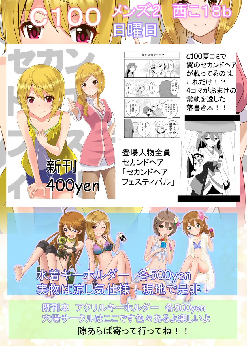 28 45 新刊と新作アクキーセットお求めの方に莉緒ちゃんから金魚プレゼント 先着数名になります どういう事?と思ったあなた!我がブースへ是非!! ゆっくりしていってね☆ #C100お品書き #C100 22/08/12 17:31