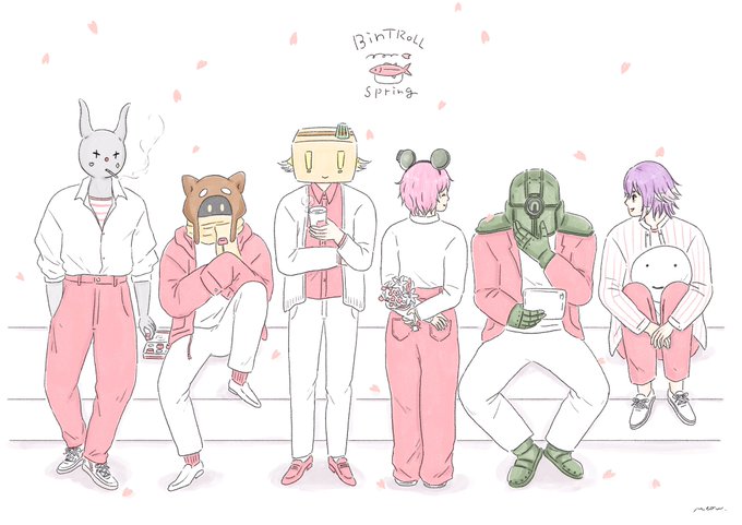 酔っ払ったしるこさんに、 照れてるいちはちさん。 面倒見の良いじらいちゃん、 いつも通りなはこたろーさんと かるてっとさん。 みなさん可愛かったです🐟✨ #bintroll四周年記念配信 #bintrollFA #絵1857 #じら絵ちゃん #ぴくてっと