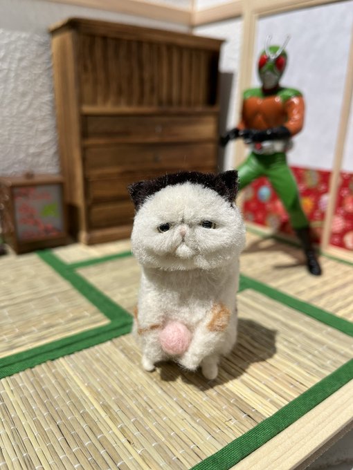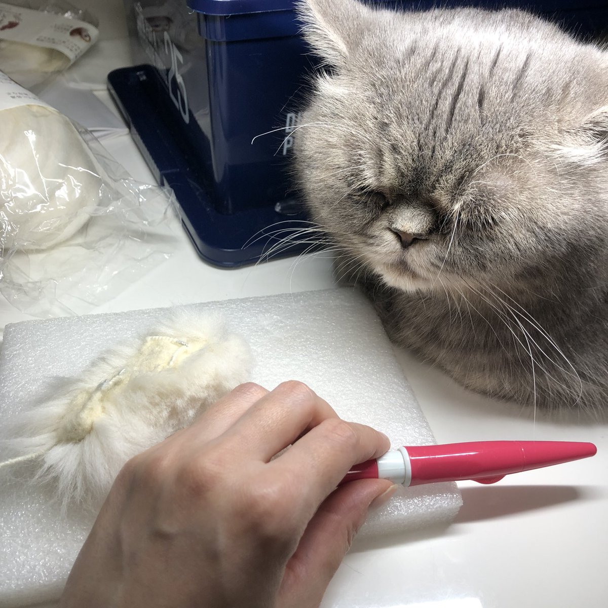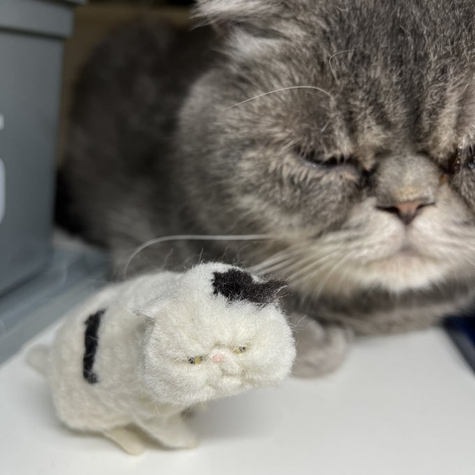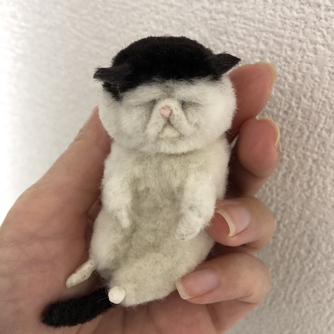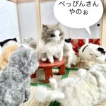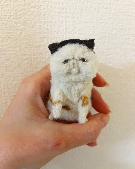 ライダー「あーそこまた乗ってる!ダメ!」 猫「今日も乗ってあげたわ♡にやり。」 な、ブリティッシュショートヘアできました😊 #ブリティッシュショートヘアー #猫好き #羊毛フェルト #猫 #minneで販売中