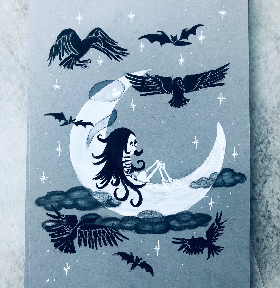 Tag 18: heute gibts eine kombinierte Zeichnung von zwei Listen: MOON von #inktober und SPELL von #mabsdrawlloweenclub #kleineKunstklasse
