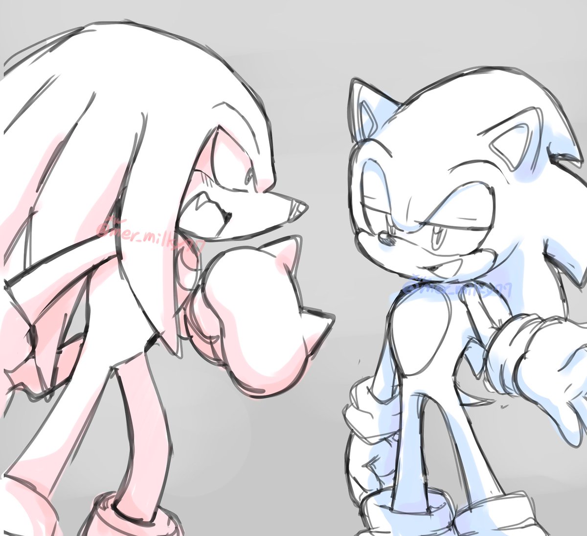 ナックルズとナックルズとソニック描きました。。まただまされたのか?