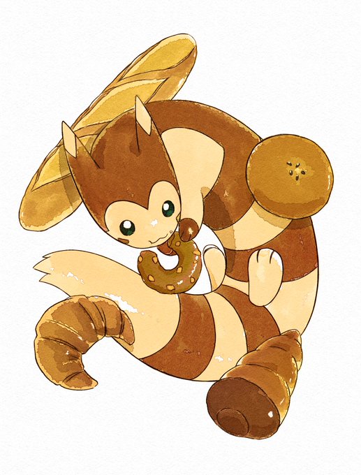 #もぐもぐオオタチ #ポケモンイラスト ベーグルもぐもぐオオタチちゃんです✨ 素敵な企画ありがとうございます♪