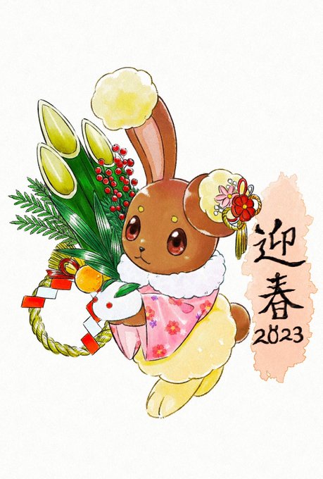 あけましておめでとうございます!! 2023年もよろしくお願い致します🙇♀️ 年賀状イラスト間に合って良かった☺️ 卯年なのでミミロル描いてみました✨