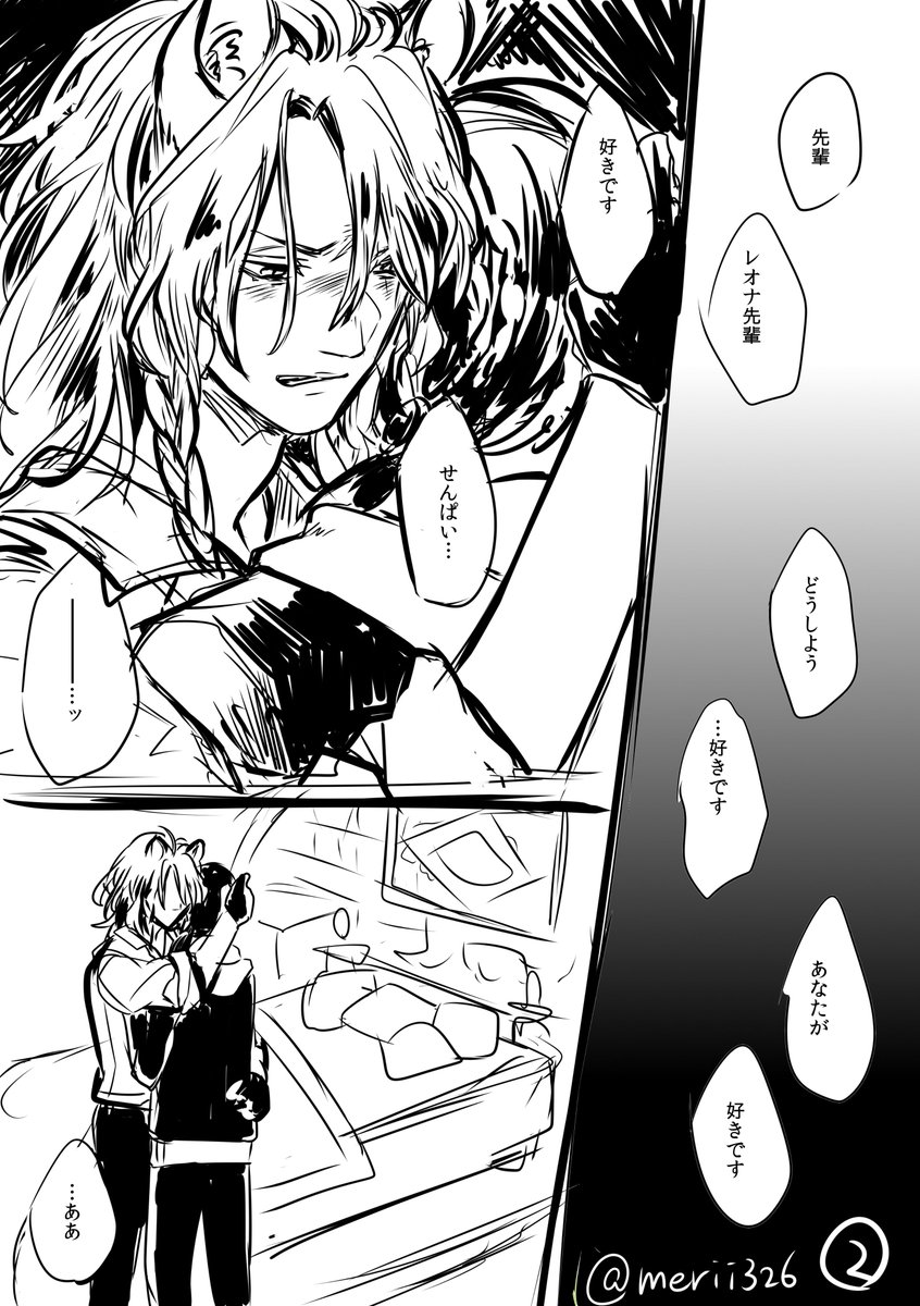 載せていいですよって言っていただけたので😂 まことさんのレオジャミSSのワンシーンを描かせていただきました😂😂❤️ ここの会話のテンポと間が😂小説ならではの空気感でめちゃめちゃ好きでした! 最高だったのでまだ読んでない方はぜひ😂 「トゲがあるって本当ですか?」 twitter.com/kouya542/statu…