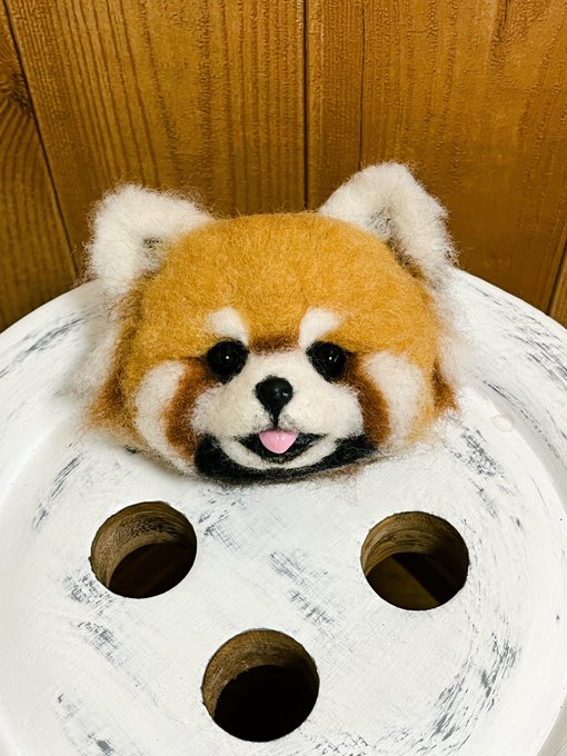 生首状態5年以上、辛かったね、ごめんよ、やっとボディーが完成❣️ 晴れやかな表情に見えるのは気のせいかしらん🥹 首は動かせるのでキョロキョロ可能😉 #レッサーパンダ #羊毛フェルト #needlefelt #woolfelt #redpanda #lesserpanda