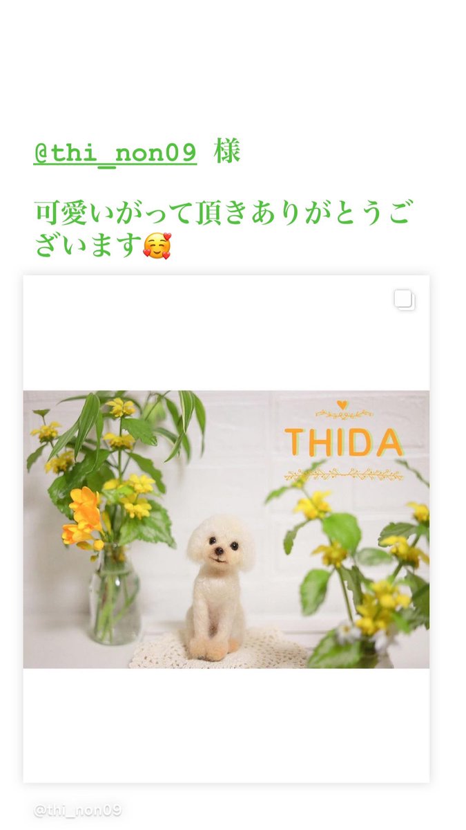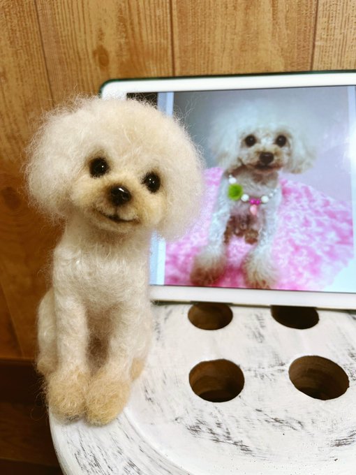 オーナー様がInstagramにアップして下さいました😊 とても可愛いがって頂いてるご様子でお出掛けにも連れて行って下さるそうです🥰 心込めてお作りしてお喜び頂いて本当に嬉しいです😆 #羊毛フェルト #愛犬ちゃんそっくり人形 #ティーカッププードル #needlefelt #woolfelt