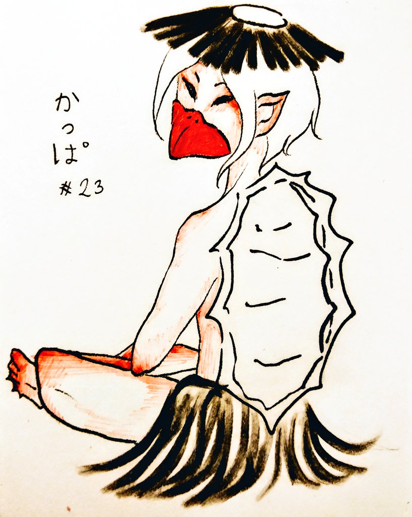 Día 23: Kappa 🥒 23日 河童 #Inktober2019 #inktober #inktoberday23 #inktober2019day23 #yokai #yokais #kappa