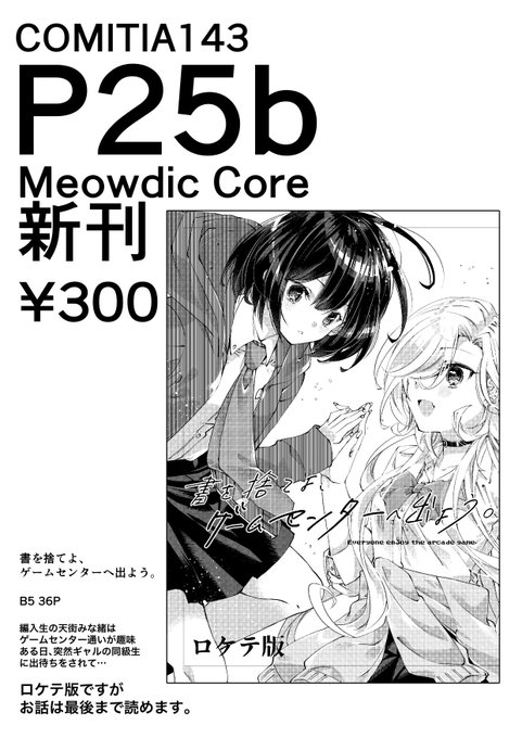 2023/02/19 #コミティア143 Meowdic Core P25b 去年のティア発行のゲーセンJKロケテ版です。 下書きの部分多めですが、お話自体は最後までご覧いただけます! 宜しければご拝読の上、ゲームセンターに向かわれたし。 当日よろしくお願いいたします! #COMITIA143お品書き