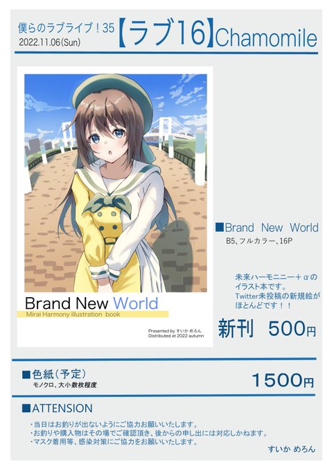 45 100 ■#僕ラブ35 おしながき ■ 【11/6(日) ラブ16】 未来ハーモニーイラスト本を頒布します✨✨ Twitterにアップしていない新規イラストが殆どです!! よろしくお願いします🤗 22/11/04 21:18