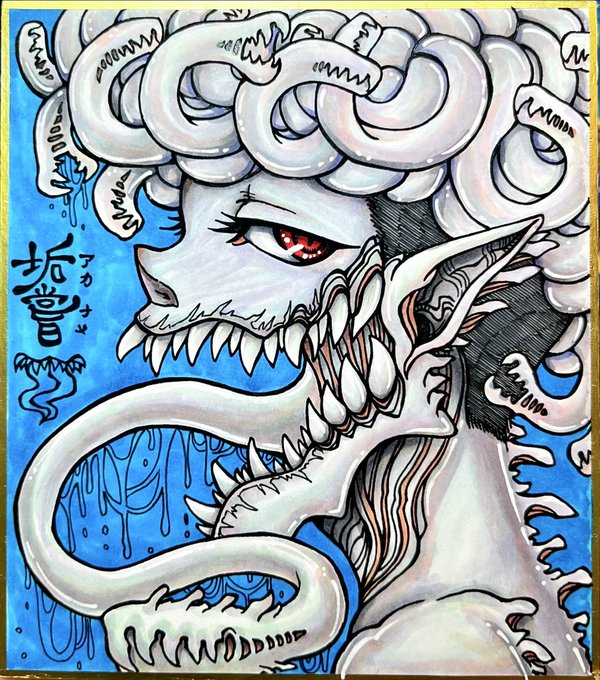 🕯引用元のいいねやRTお願いします🕯 隔月妖怪ハッシュタグイベント“妖怪まみれ"8月は〈妖怪と怪談〉です。 メインビジュアル『青行燈』描かせて頂きました。百物語で語られた怪談、怪異話、妖怪話が寄り集まって顕現したというイメージです。#妖怪 #イラスト twitter.com/shinpo_yuk/s…