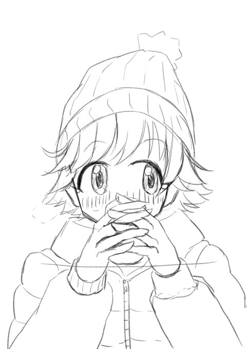 ダウンパーカー×ニット未央 線画にしたらクォリティ落ちそうなの