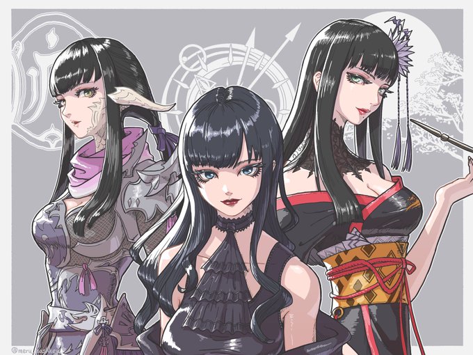 764 2320 #今までで作画カロリーMAXの作品上げようぜ これでした。黒髪美女三銃士。 23/03/08 18:39