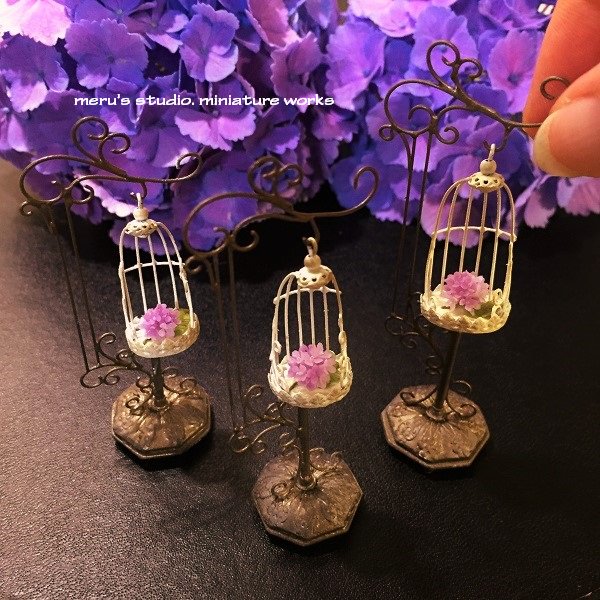 小ぶりな紫陽花を作りました。 そしてバードゲージの中へ。 この組み合わせは 何度つくっても大好きです。 東京ミニチュアショウに出展させていただきます。 ブースNoは52。 どうぞよろしくお願いします(*^-^*)
