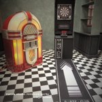 32 282 ジュークボックスとダーツ台。 明かりがつくとかわいいなぁ♡ #ミニチュア #ドールハウス 22/08/11 13:06