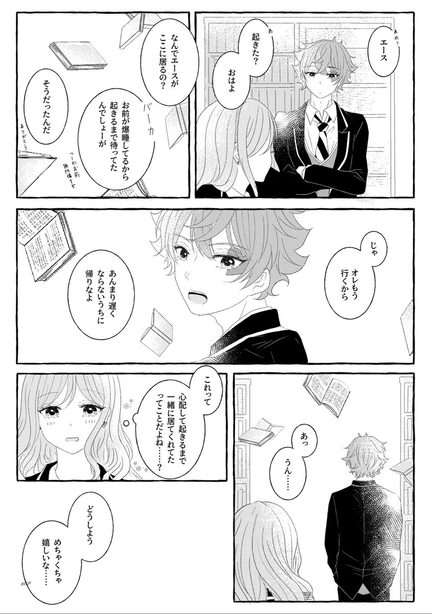 21 285 昨日のイベントの無配だったエー監♀❤️🌸漫画です! ありがとうございました! ⚠️女監督生(デフォ名使用)顔あり喋ります #twstプラス #twst_NL 22/08/22 17:54