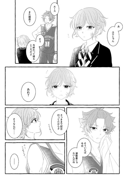 22 227 付き合ってないエー監♀❤️🌸 🏀ウェアが良すぎて勢いで描きました。 ⚠️デフォ名男装監督生、顔あり喋ります #twstプラス #twst_NL 22/12/02 20:59