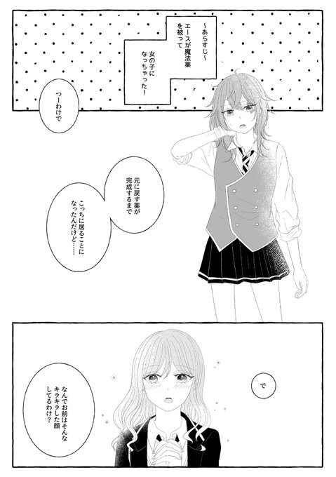 70 915 エー監♀❤️🌸 魔法薬を被って女の子になっちゃった❤️と監のお話 ⚠️女体化注意 ⚠️デフォ名女監督生顔あり喋る #twstプラス #twst_NL 23/04/11 19:59