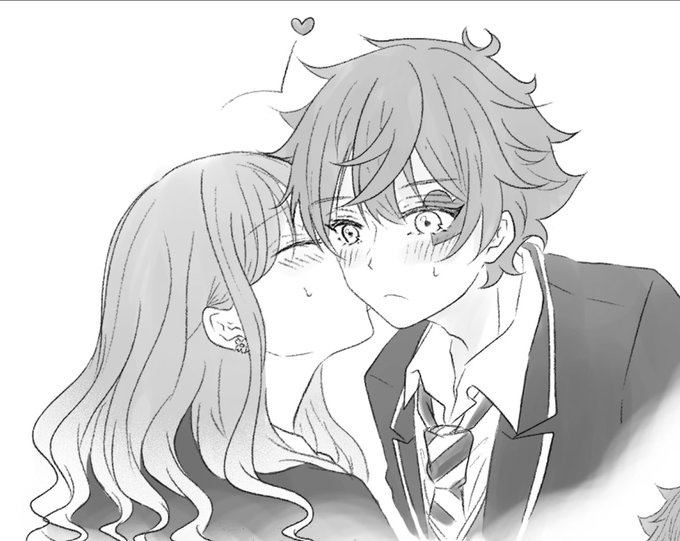 30 412 💋の日らしいので、昔描いたちゅーしてるエー監❤️🌸再掲する ⚠️女監督生顔あり ⚠️2枚目私服、ピアス注意 #twstプラス #twst_NL 23/05/23 21:04