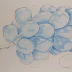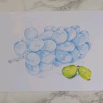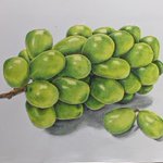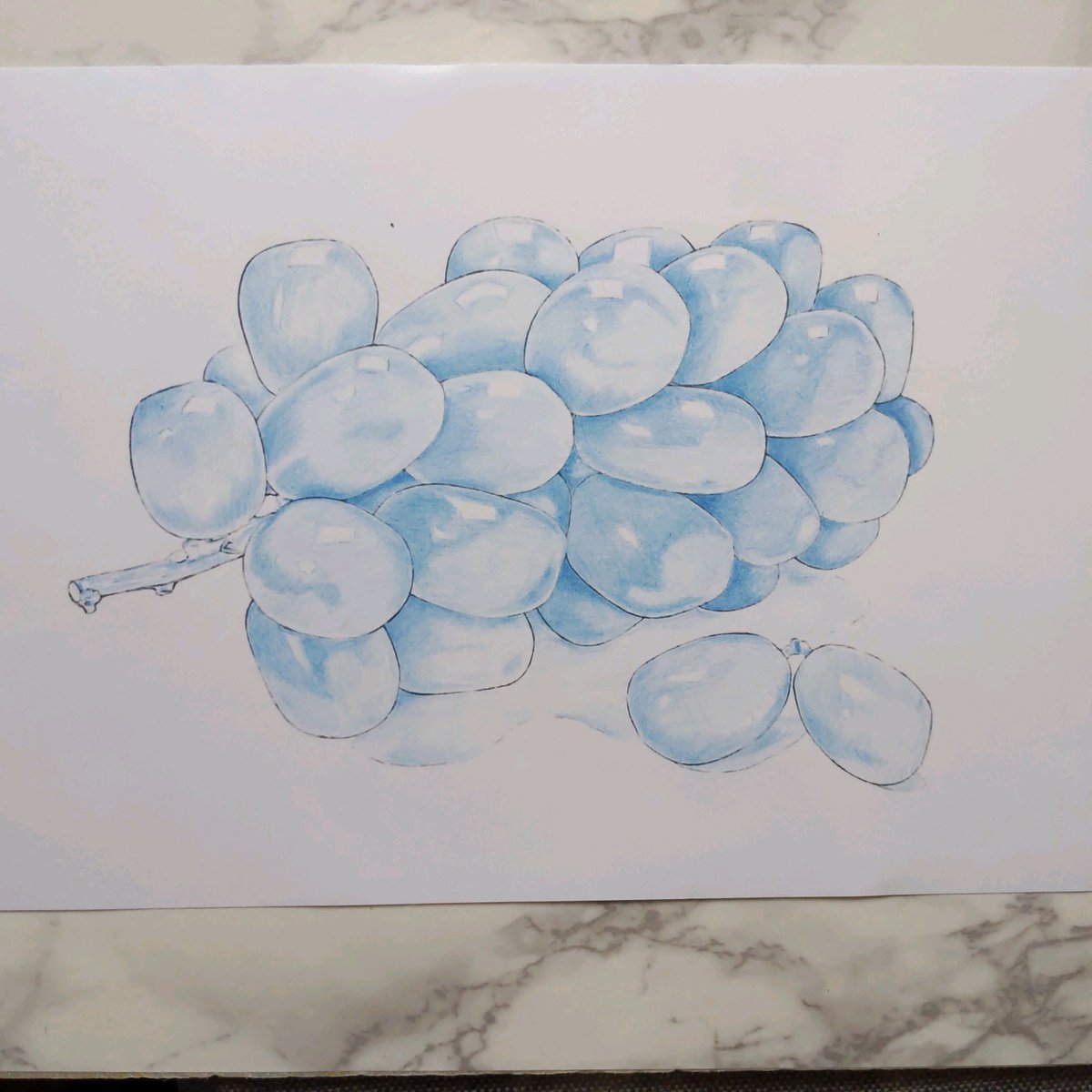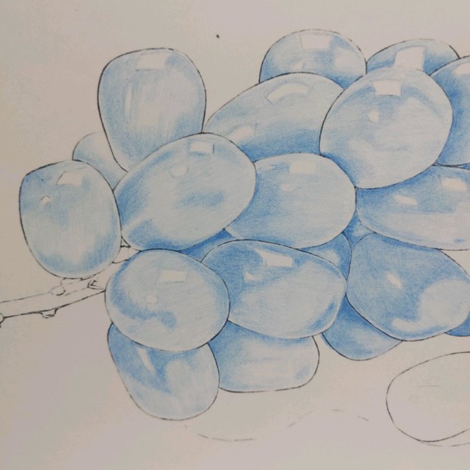 うーん🤔 調子に乗って赤黒使いすぎた感 結局ひと粒ずつ赤黒入れつつ青黄乗せての流れでやってみてるけど赤うっすら入れてるつもりだったけど入れすぎてたのかな。房の重なり難しい… そして黄色ゴリゴリ塗りすぎて青が乗らなーい😱 #wip #イロドリアル #色鉛筆画上達ドリル