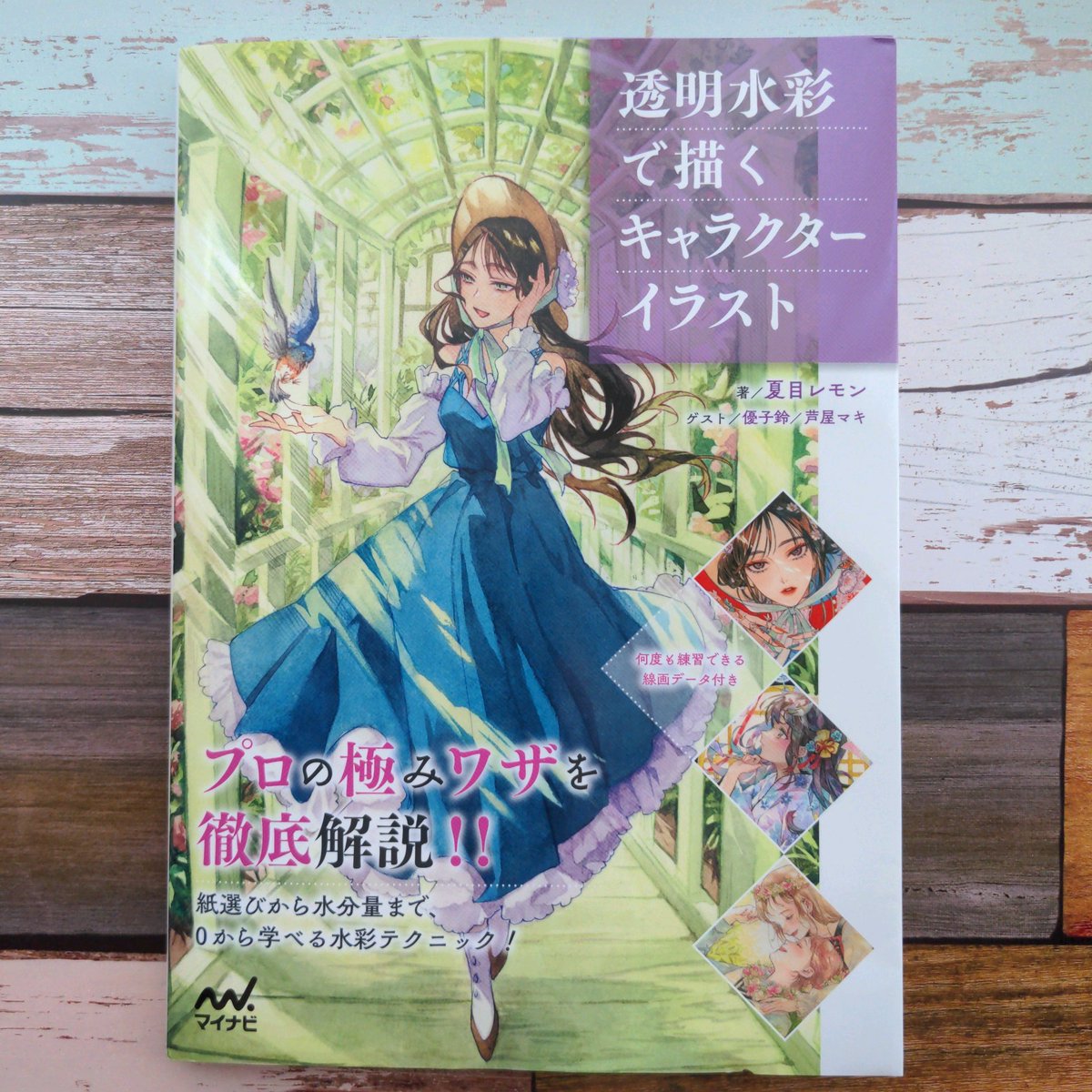 夏目レモン(@remon101121 )さんの新しい本引き取ってきた。あ〜やっぱり素敵💘まずは超絶苦手な水加減練習してみる(塗り以前の問題) メイキング丁寧だし線画DLできるのありがたい😄線画切り取りコピーという作業を省略できるの助かります✨ #透明水彩で描くキャラクターイラスト #夏目レモン