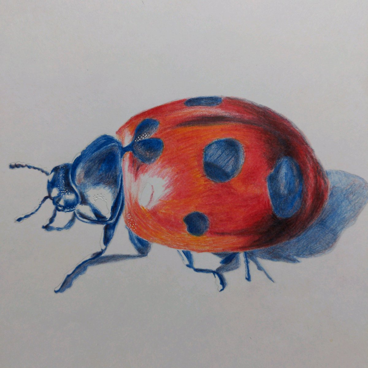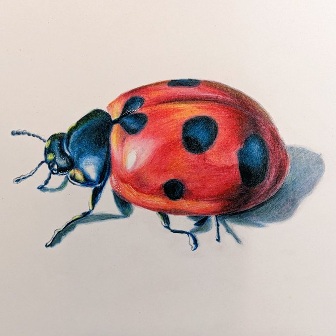 青足しました 足したんですよ🤭前と変わってないけど… ビビリながら塗ってたから圧倒的に塗り足りない💦あともう少し青たそうか、赤黒入れてから調整するか迷います #wip #イロドリアル #色鉛筆画上達ドリル