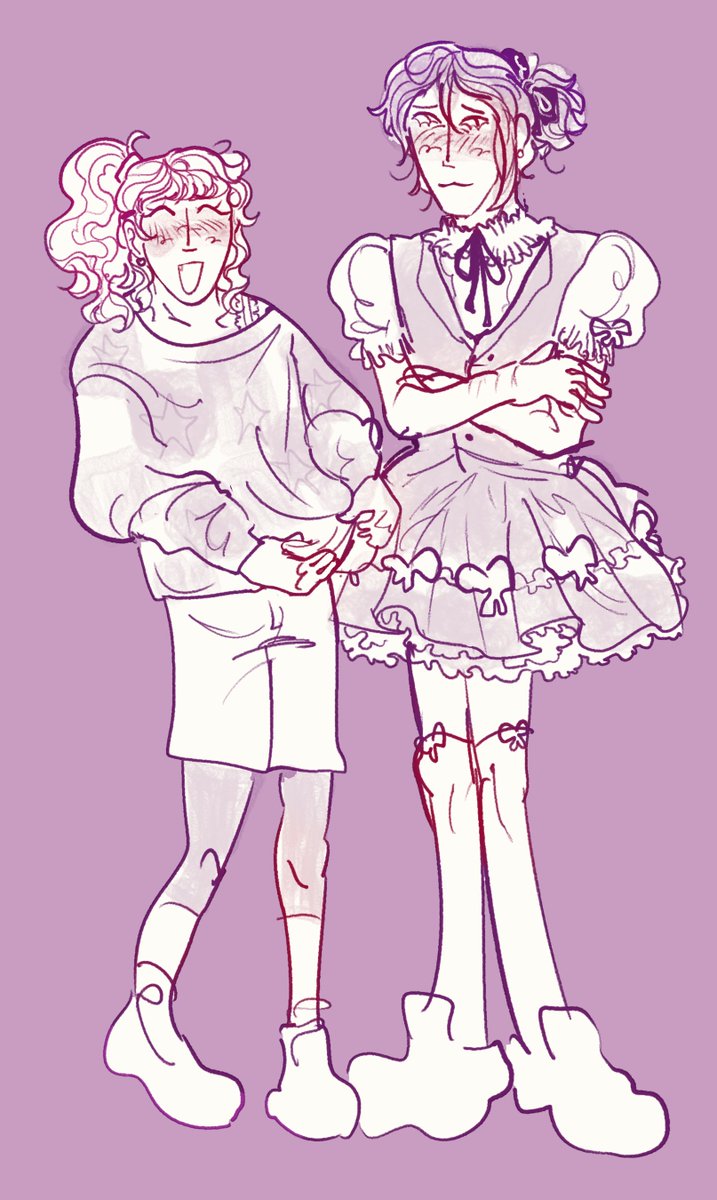 i wanted to draw something nicer but my wrist is basically nonfunctional QuQ hope yall like ^7^ they switched clothes if not clear ! #prsk_fa #mizurui #mizuruiweek2023 (day 1 - fashion)(also my birthday LOL !)
