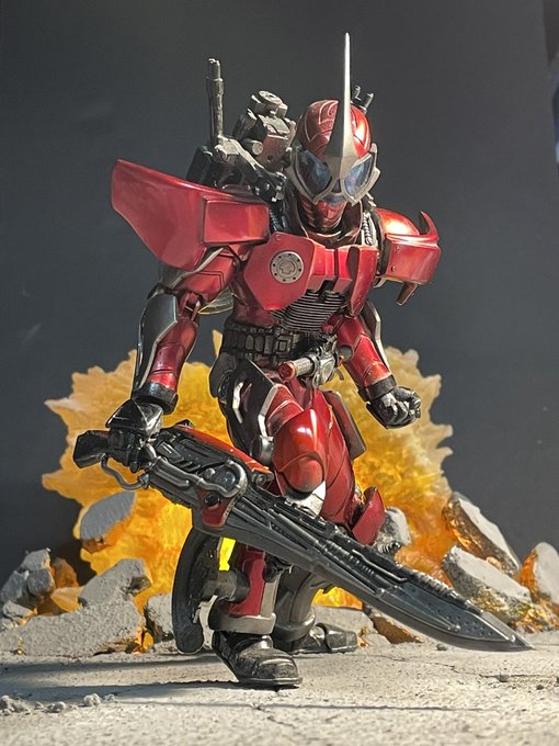 現在発売中の月刊ホビージャパン6月号に掲載されております 「DXキングオージャー」作例ですが、明日28日からヨドバシカメラ マルチメディアAkiba 6F玩具コーナーでの展示が決定いたしました。 台座のスチームパンク砦に乗っかっての展示となりますm(_ _)m #キングオージャー #ヨドバシAkiba