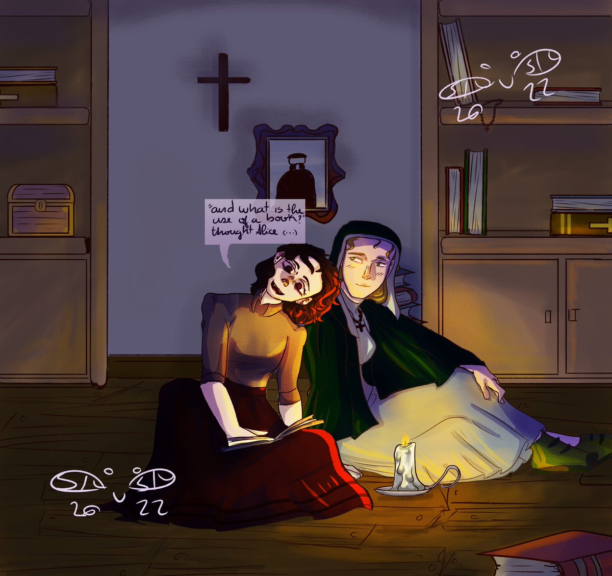 "Não importava quantas horas se passassem, Madelyn e Helena não paravam a leitura, agarradas uma na outra, tais quais dois pombinhos apaixonados"💕 ❤️+🔄+💬=💖📕 #originalcharacter #ArtistOnTwitter #artist #desenho #desenhodigital #lgbtart