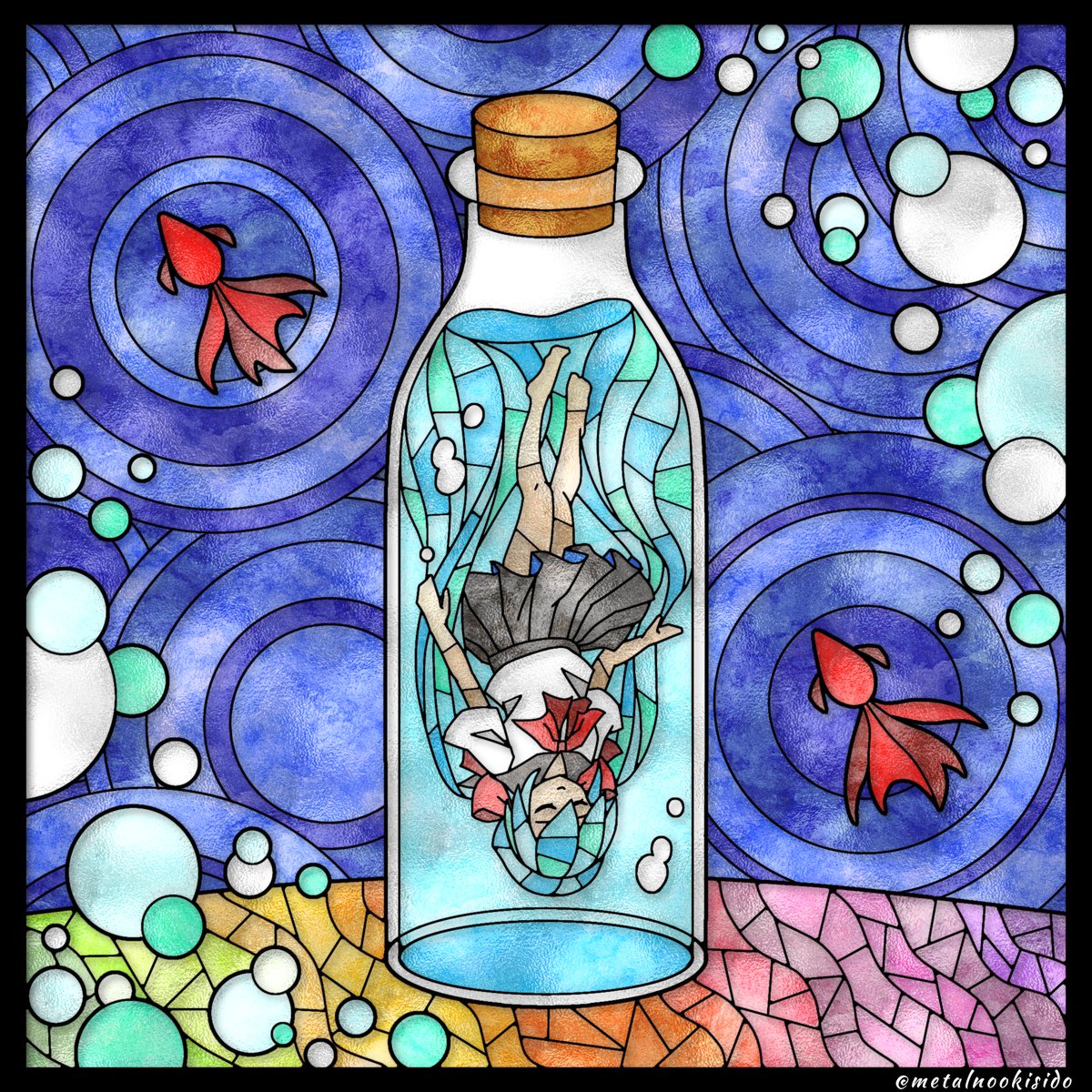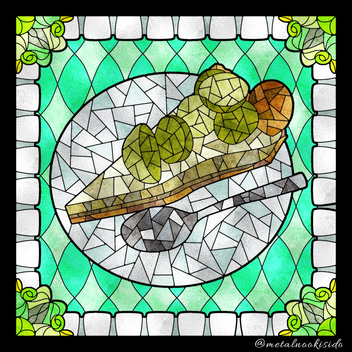aoc【@aoc_no39 】さんの作品でステンドグラス風イラストを描かせていただきました! ほんわかした男の子と美味しそうな食べ物の組み合わせがキュートな作品ばかりで、ずっと見てられます❣ ※ご本人様に許可をいただいております。 #ステンドグラス風イラスト