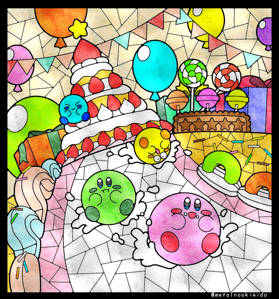 『スイーツレース🍭🏁』 先週配信された「カービィのグルメフェス」が可愛すぎて描いてしまいました… #ステンドグラス風イラスト #イラスト #イラスト好きさんと繋がりたい #カービィのグルメフェス