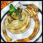 #ステンドグラス風イラスト お久しぶりのステンドグラスです! 描きためていたので2月にさつまいものイラストとなってしまいました🍠 ここのパンケーキはボリューム満点でふわっふわなので今年も食べに行きたい✧
