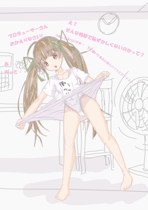あつぃ…💦デフォ一発変換できない名前の女の子…🌟箱崎星梨花ちゃん✒ラフらふ📱 某アイドル用なTシャツ👕の気もしますけど(・x・)着ちゃってます 下は水着👙なので安心♪ #ミリシタ #イラスト #procreate