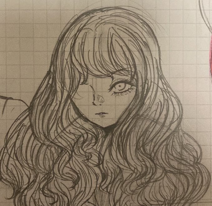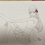 1 8 下書き、試し塗り (なんか顔と体の比率悪い…?よね。) もうダメだ。眠すぎる。 #イラスト #絵 #女の子 #下書き #ペン画 22/05/10 02:27