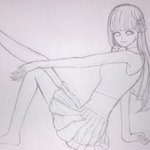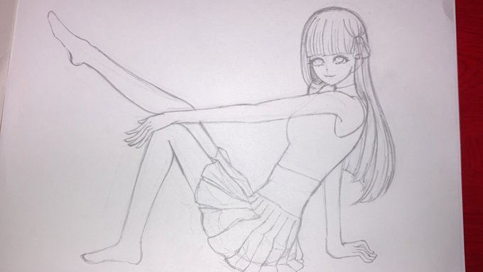 下書き、試し塗り (なんか顔と体の比率悪い…?よね。) もうダメだ。眠すぎる。 #イラスト #絵 #女の子 #下書き #ペン画