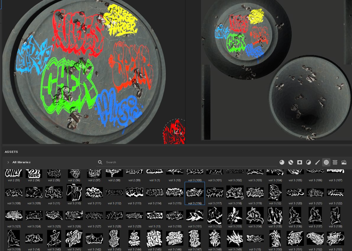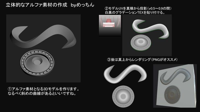 Substance3DPainter グラデーションの種類 機能によるグラデーション生成機能が主に3種+応用1種がある。 ①ポジション 上下のみの指向性 ②ディスタンス 球体空間の密度と位置 ③リニア ポジション色指定による指向性 ④平行投影 投影法による平行空間による深度 #Substance3DPainter