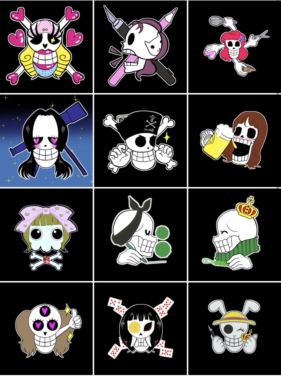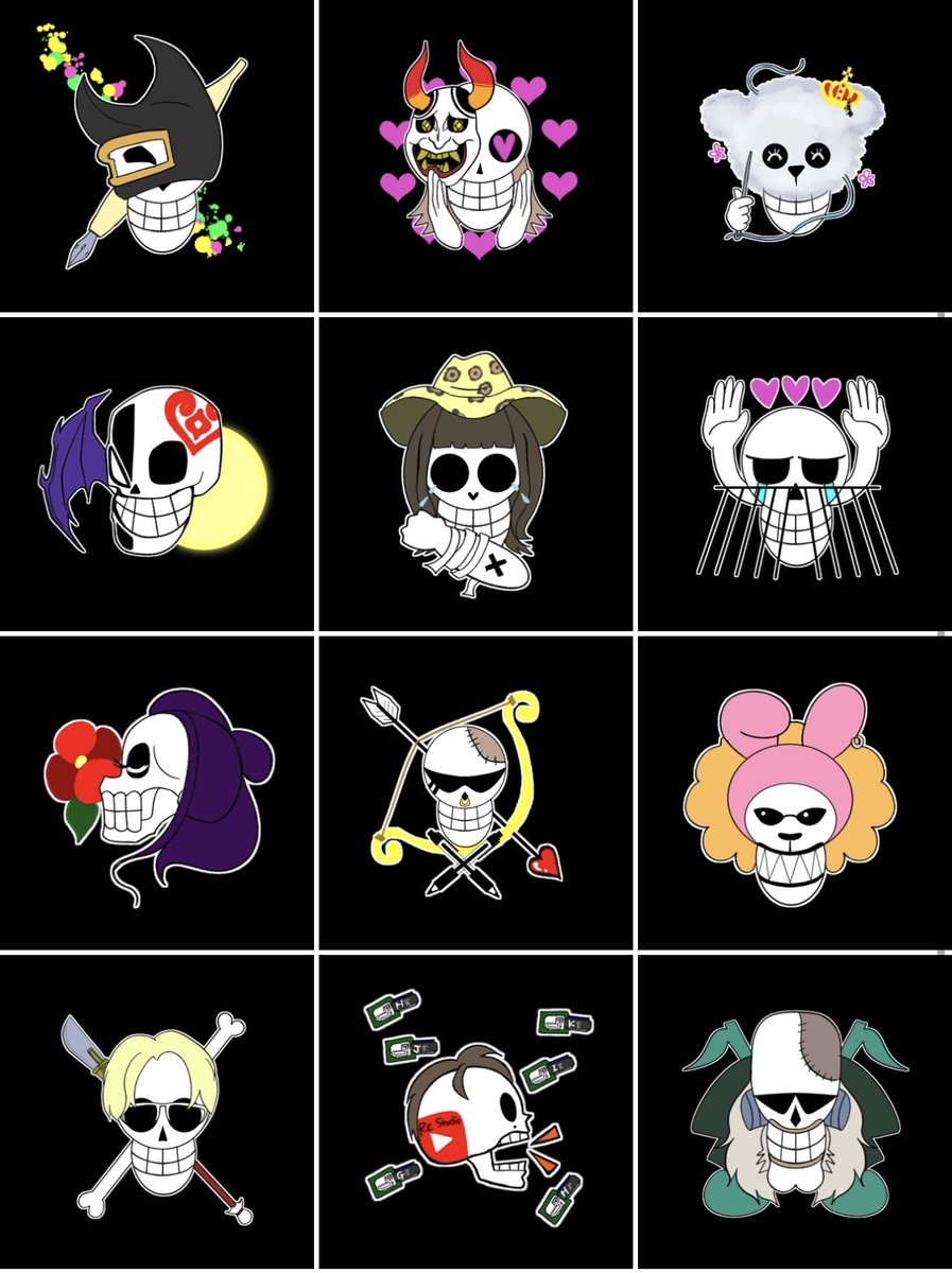 #今月描いた絵を晒そう 海賊旗ブームでした、モチベーション下がり気味なのでポツポツ愛してるフォロワーさんだけは続けて描いていきます、描かせてくださってありがとうございました🥺