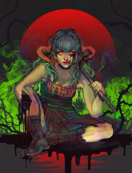 hello #PortfolioDay, I'm Mew, an illustrator seeking YA work/cover art gigs. I work full-time as an engineer so I am available for small projects. if you're looking for colorful, dark artwork, send an inquiry my way~💜 📧: mewiyev@gmail.com #illustration #youngadult #horror