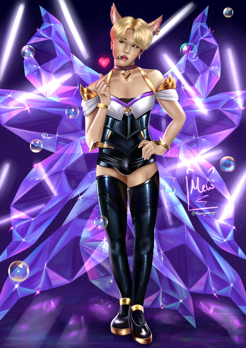 I'm doing damage, went just how I planned it 💖 Commission for the best bean @Artsy_Wolf94 ♡♡♡ T^T #BTSfanart #KDA #KDAxBTS #KDAAhri #JIMIN #AHRI #KDAxBTS #mewyoongii