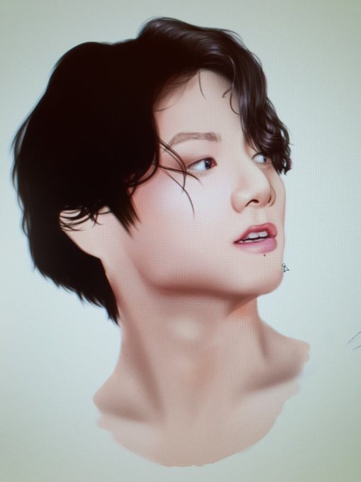 (Taekook Commission update) Just a little wip UwU ...this might be the longest I've ever spent on a face, alone. Damn. #BTSfanart #Jungkook #JK #Jungkookfanart #taekook #wip ♡