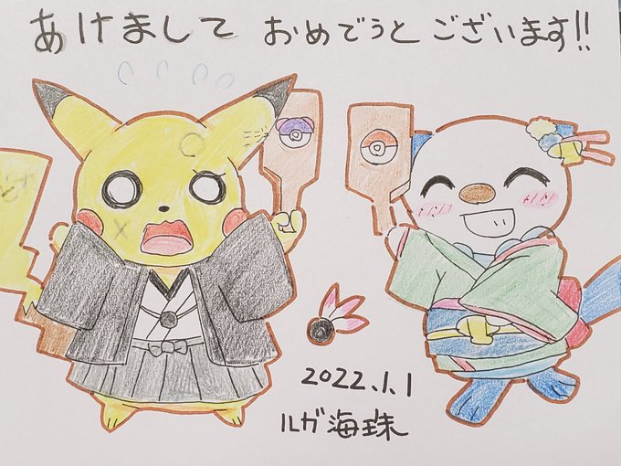 2 15 描き納め。 #描き納め #ミジュマル #ピカチュウ 21/12/31 18:41