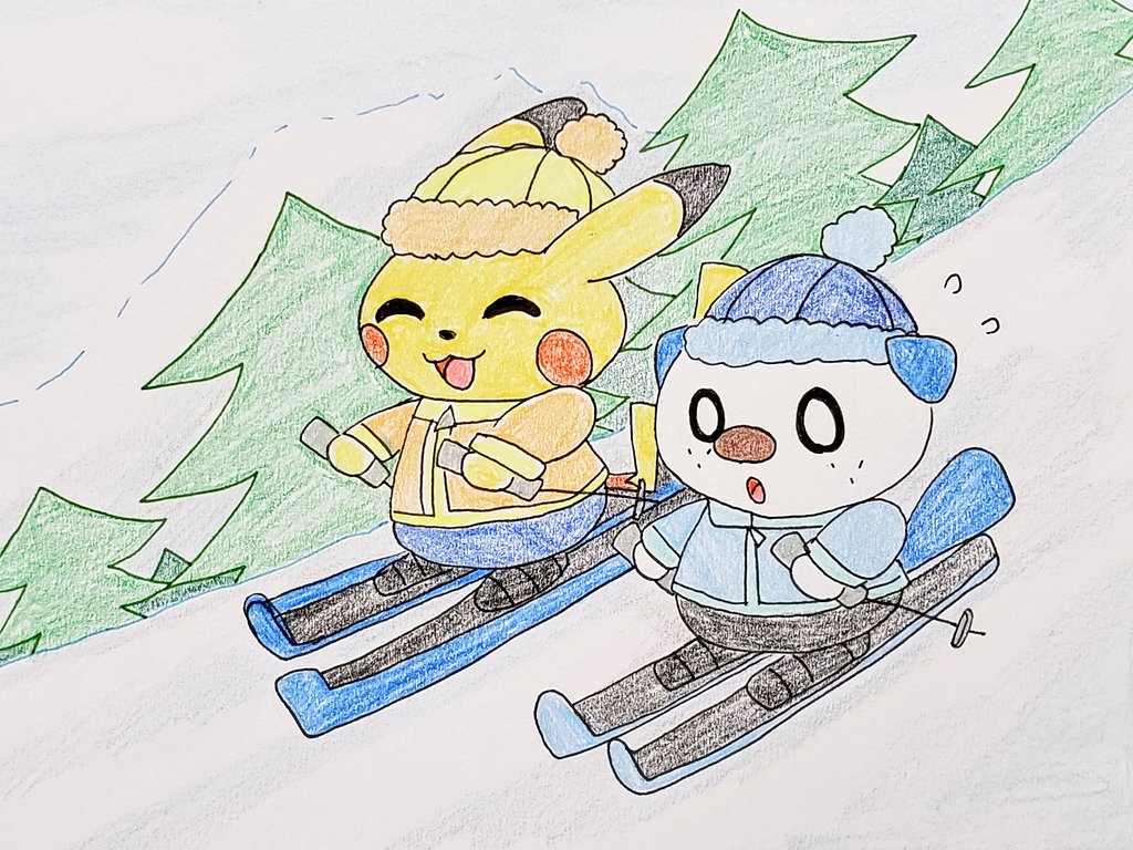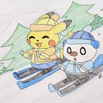 8 31 スキー楽しいね⛷️ #ポケモンイラスト #ピカチュウ #ミジュマル 22/01/27 08:52