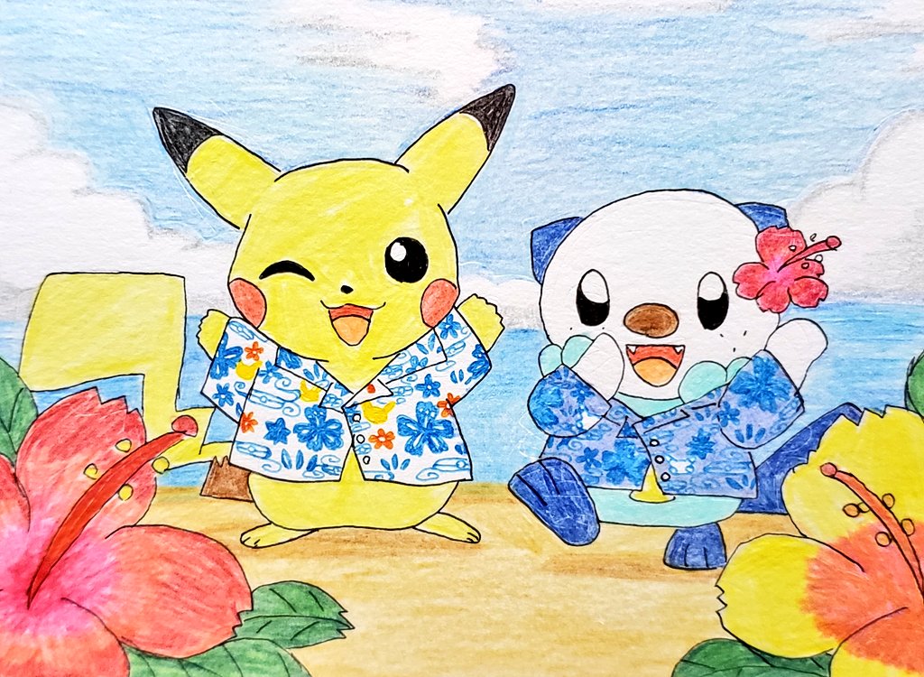 描き納め。 #描き納め #ミジュマル #ピカチュウ