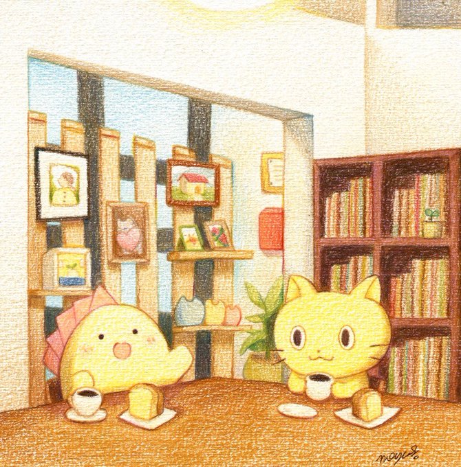 こねっこで過ごす休日☕️ #色鉛筆 #色鉛筆イラスト