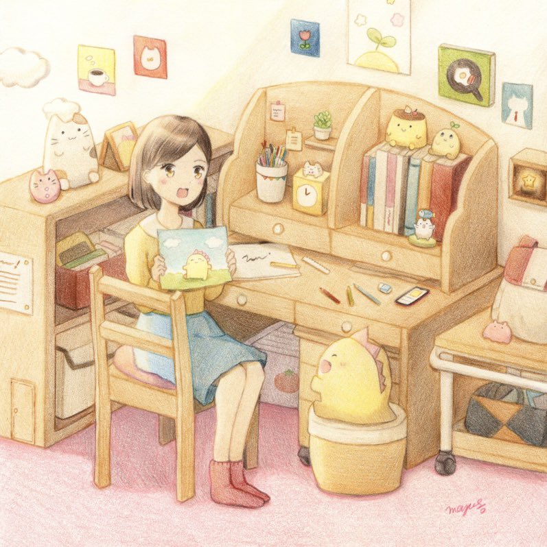 3 9 色鉛筆を使ってゆるくて可愛い世界やお食べ物を描くのが好きです✨ #三億アカウントの中から私を発掘してください 23/03/16 20:47