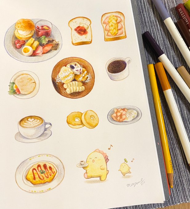 色鉛筆を使ってゆるくて可愛い世界やお食べ物を描くのが好きです✨ #三億アカウントの中から私を発掘してください