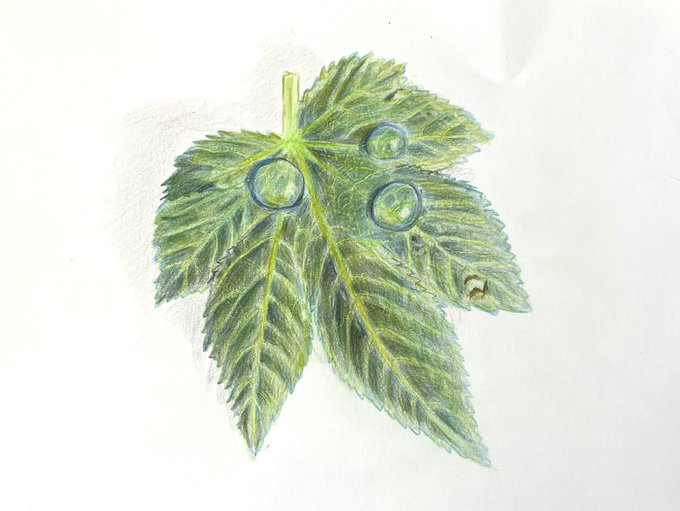 松村薫さんの色鉛筆画の本を参考に描きました。 水滴は難しかったですが、色んな技法を学べてよかったです。本当はもっとじっくり観察しながら丁寧に仕上げればよかったのでしょうけど、ついサッと短時間で描いてしまいました。 #色鉛筆画 #絵描きさんと繋がたい