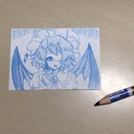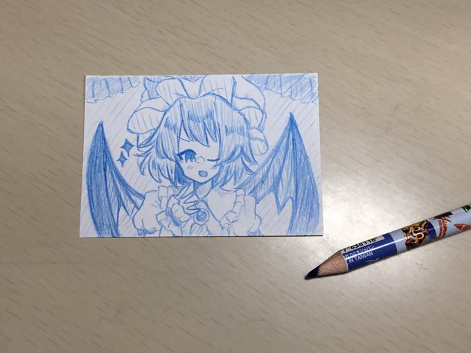 メモ帳の裏に描いた落書きレミィ…🦇 青鉛筆で描くの楽しい…
