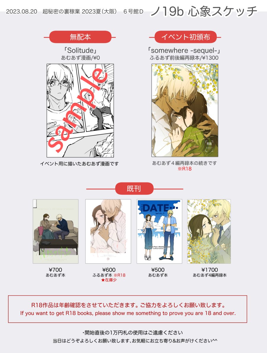 21 70 8月20日インテのイベントのお品書きです。あむあずの8P無配漫画を持って行きます、既刊ともどもどうぞよろしくお願いします!(頒布価格、間違えていたところを修正🙇♀️) 23/08/18 20:48