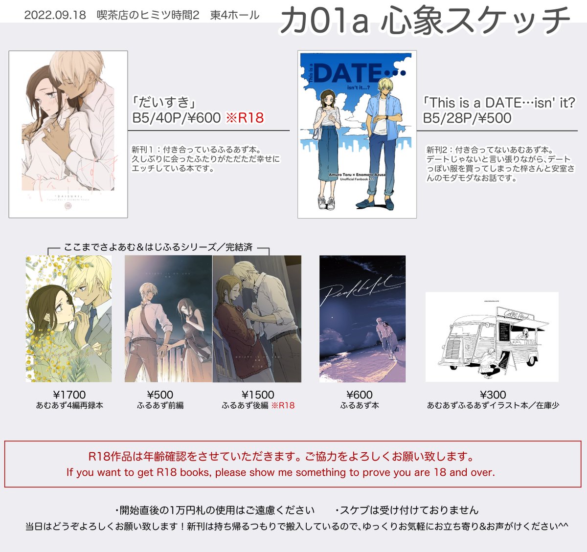 9/18 喫茶店のヒミツ時間2(あむあずオンリー)お品書きをpixivにアップしました pixiv.net/artworks/10118…