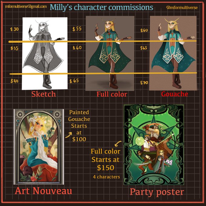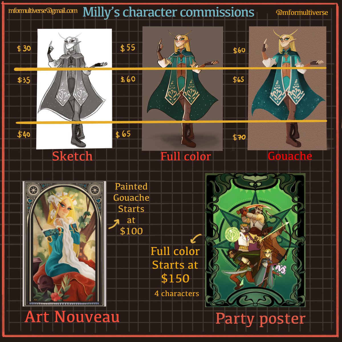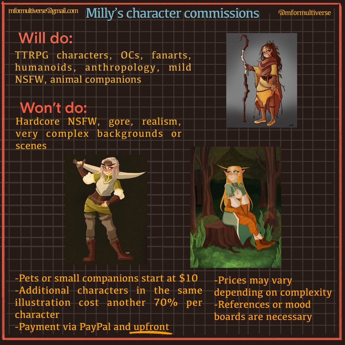 I’m opening commissions again for this month! New options too ♥️ DM me if you are interested 🌿✨ RTs are appreciated as always 💕🥰 #commisionsopen #dndart #DnDcharacter #ttrpg